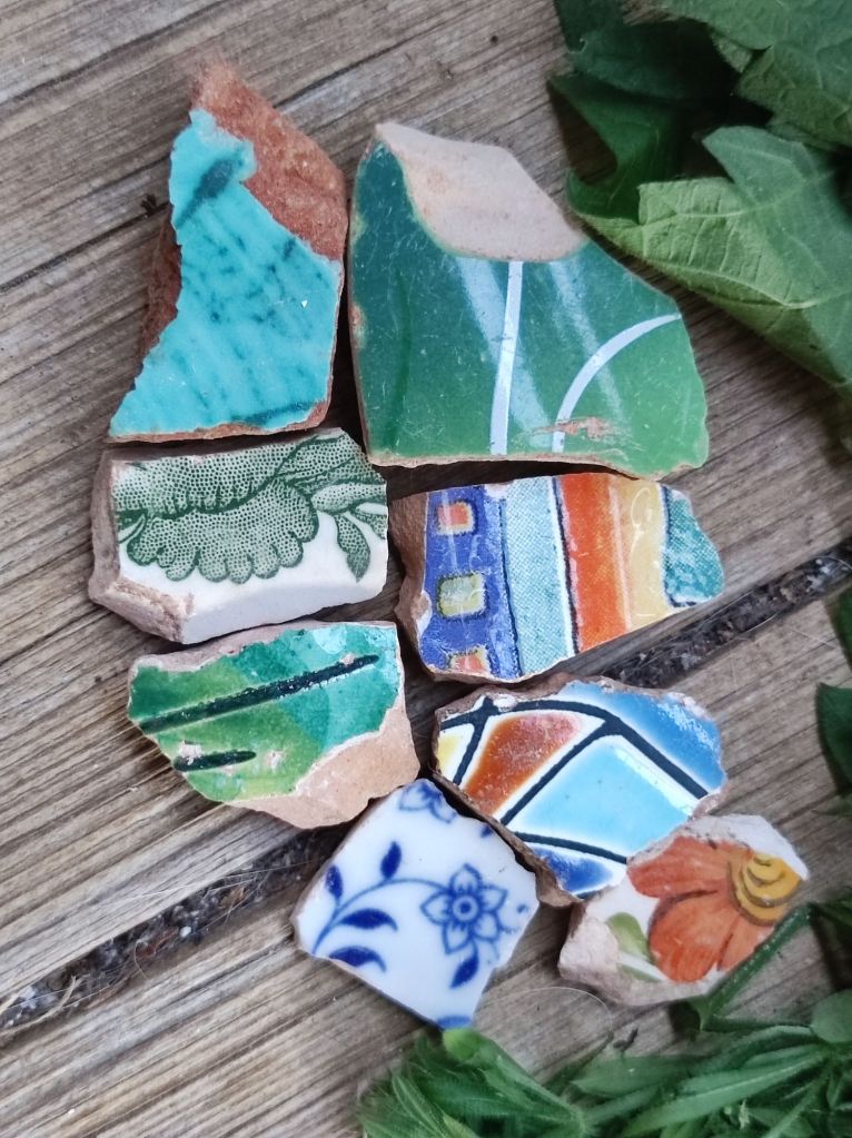 Wenn ich genug Scherben und Steine finde, möchte ich irgendwann etwas daraus machen. Vielleicht ein kleines Mosaik. Etwas, das daran erinnert: Schönheit ist nicht immer heil.